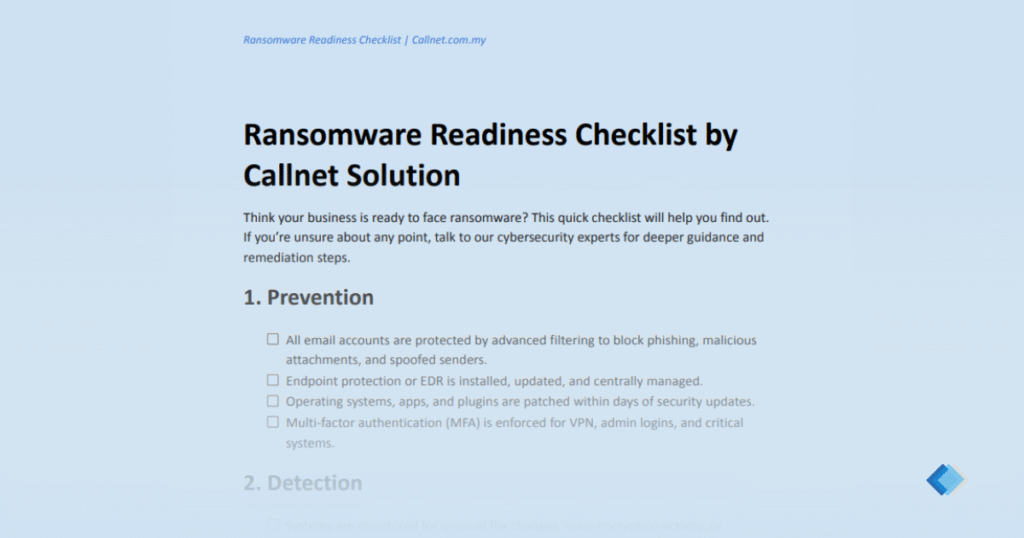 Callnet Solution offers a free ransomware protection assessment to identify weaknesses in your current defences and recommend practical, cost-effective solutions tailored for Malaysian businesses.